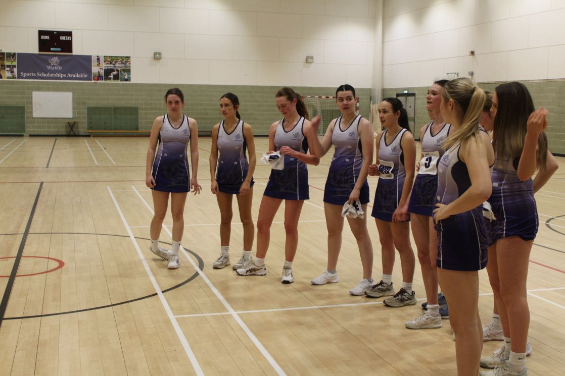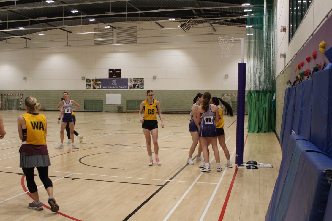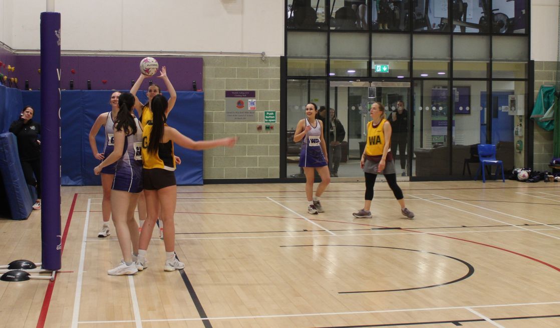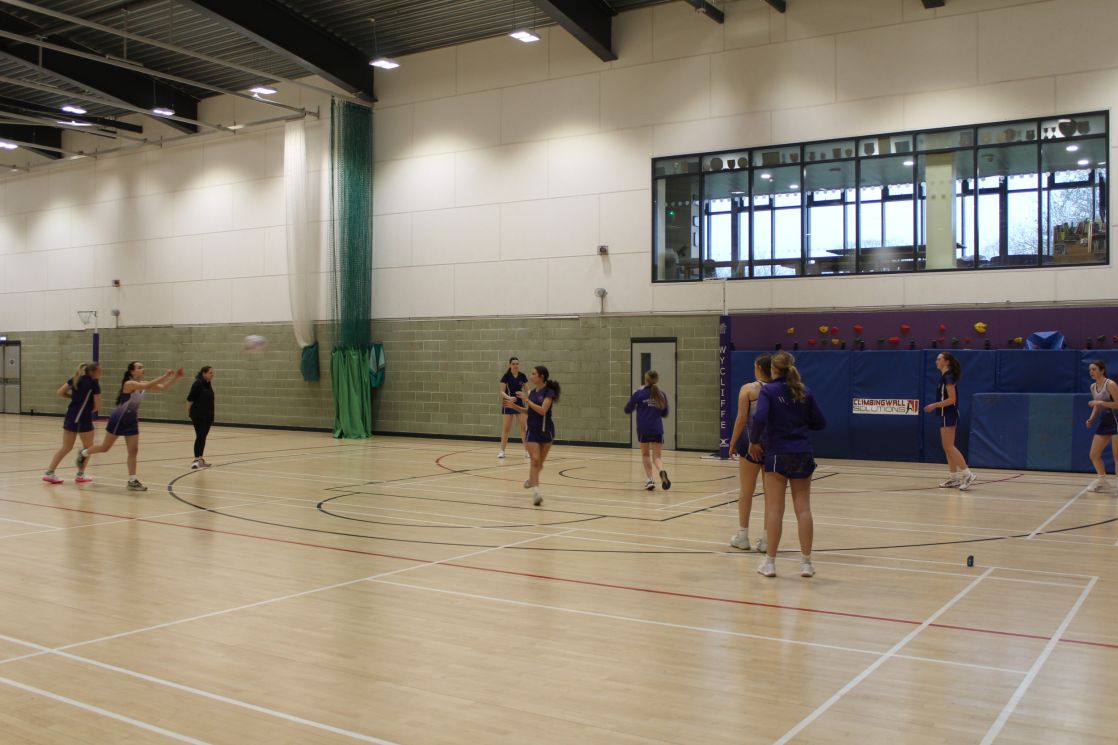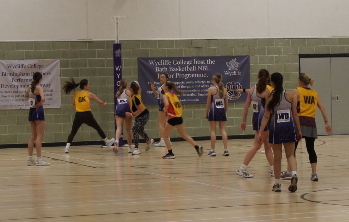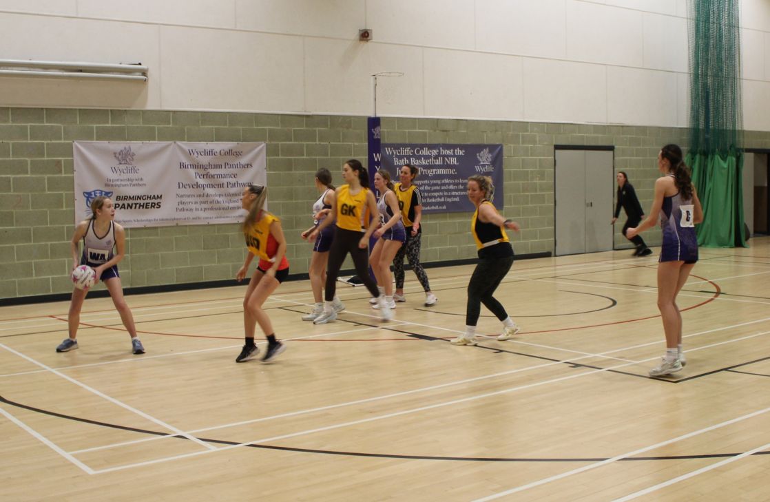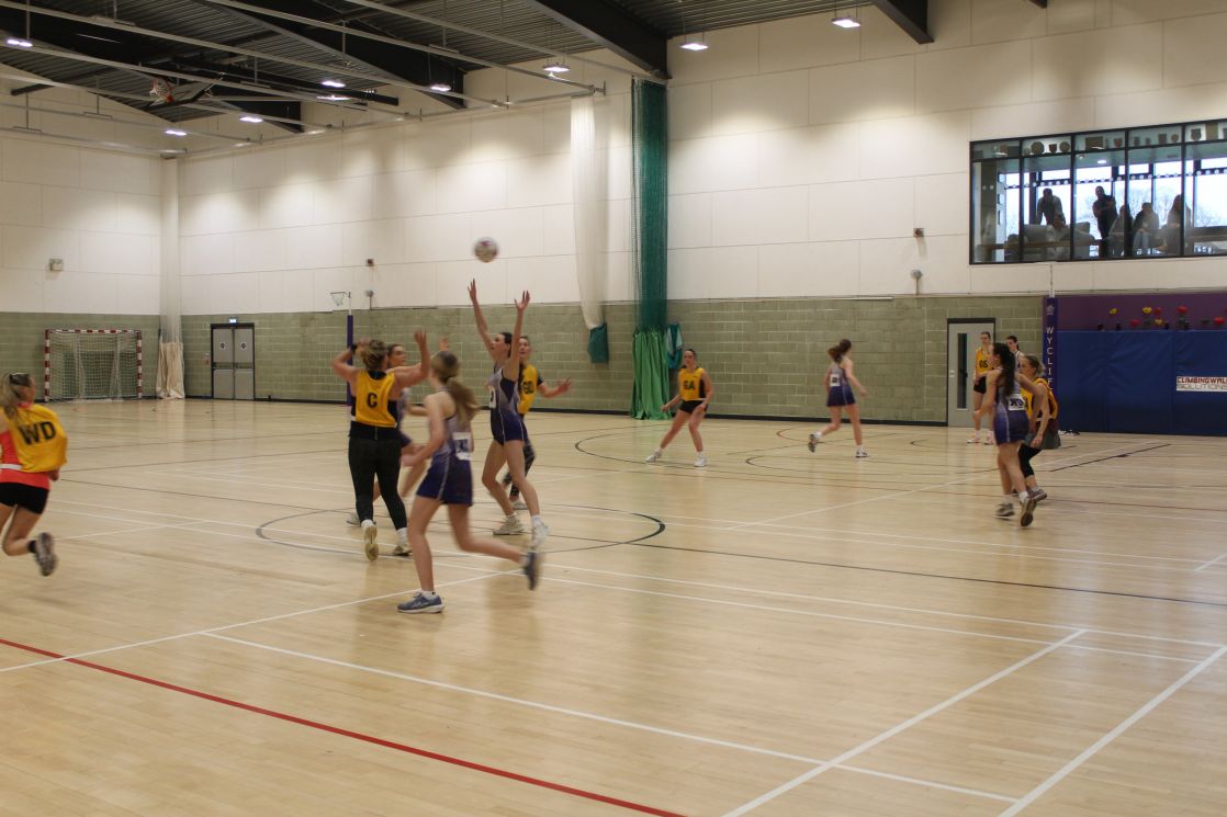 There was a lot of action  in the sports hall as the OW Netball Team beat Wycliffe 24 to 38.